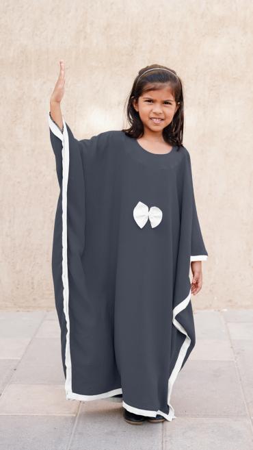Dark Grey and Off White Kids Kaftan with a Bow and Band Work