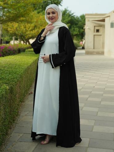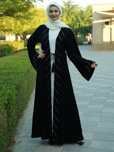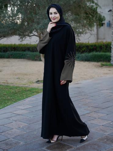 Almond and Black Modest Dress by CEY with Shrug Belt and Crystal Hand Work on Front