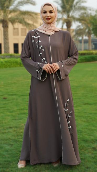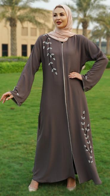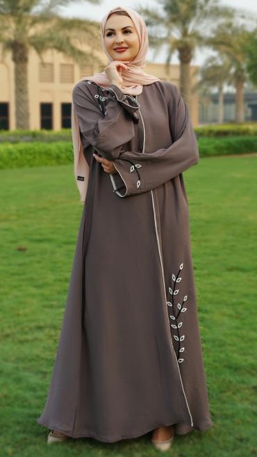 Brown Zoom Abaya With Crystal Hand Work And Piping